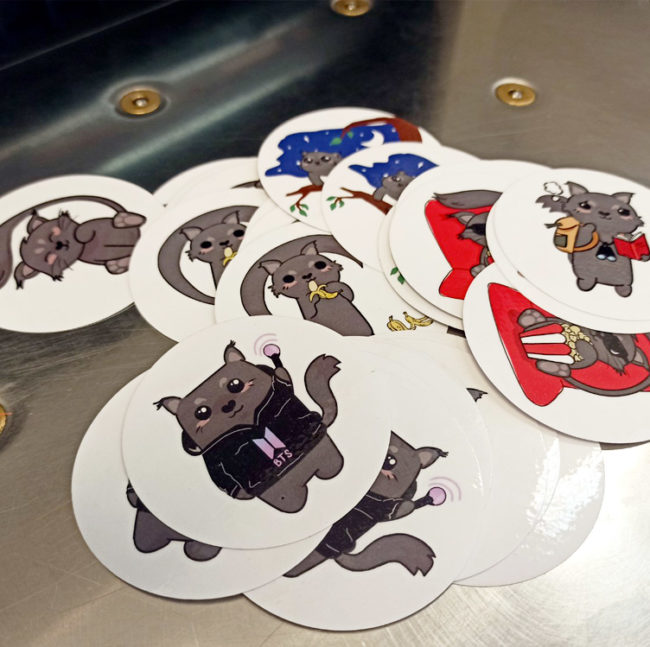 Projet d’impression de Stickers pelliculés, en petite quantité. Ces Stickers ont étés imprimés pour l’association AB Conservation, qui se dédie à l’étude et à la protection du binturong, un petit Mammifère d’Asie du Sud-Est.